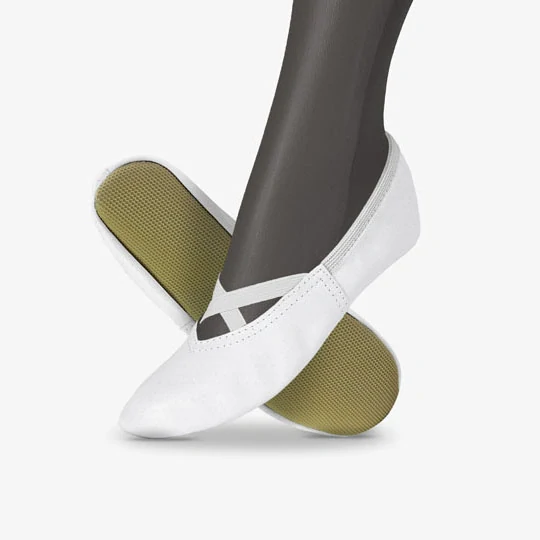 - Křížené gumičky: Díky dvěma skříženým gumičkám přes nárt jsou cvičky ideální i pro vyšší nárt, zajišťují stabilitu a pohodlí při nošení.