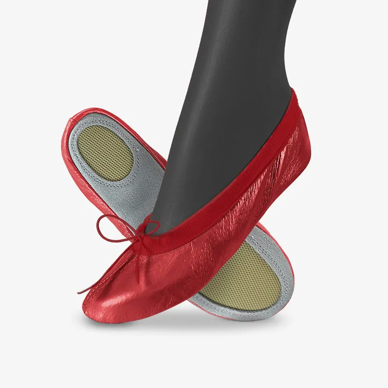 - Sport Grip: Naše cvičky Spirit mají kombinovanou podešev z broušené kůže a protiskluzových oválků, což zajišťuje bezpečný pohyb při sportovních aktivitách a lehký skluz po podlaze.