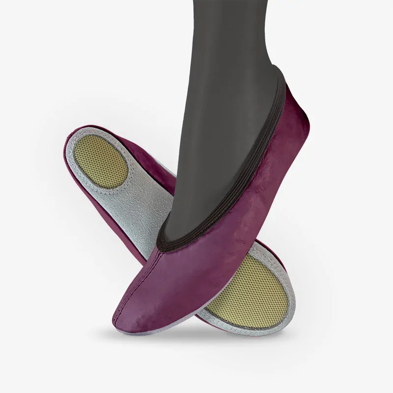 - Sport Grip: Naše cvičky Basic mají kombinovanou podešev z broušené kůže a protiskluzových oválků, což zajišťuje bezpečný pohyb při sportovních aktivitách a lehký skluz po podlaze.
