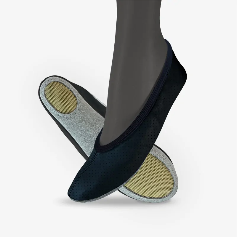 - Sport Grip: Naše cvičky Basic mají kombinovanou podešev z chromové kůže a protiskluzových oválků, což zajišťuje bezpečný pohyb při sportovních aktivitách a lehký skluz po podlaze. Ideální pro profesionální sportovní aktivity a mažoretky.