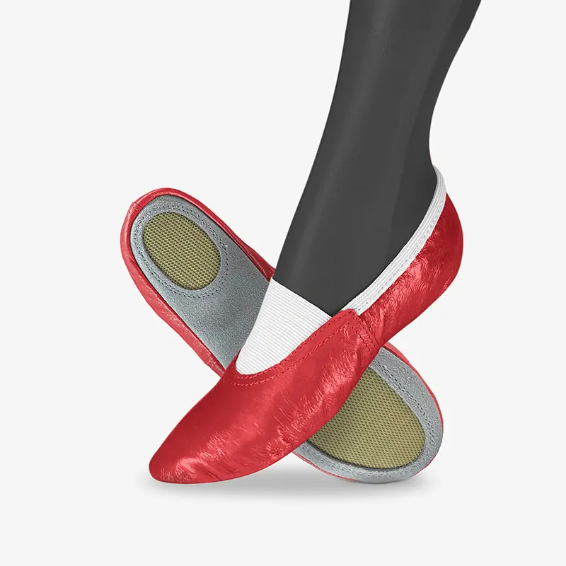 - Sport Grip: Naše cvičky Classic mají kombinovanou podešev s protiskluzovými oválky, což zajišťuje bezpečný pohyb v rozběhu a zároveň lehké otočení na špici i patě. Ideální pro mažoretky a další profi sporty.