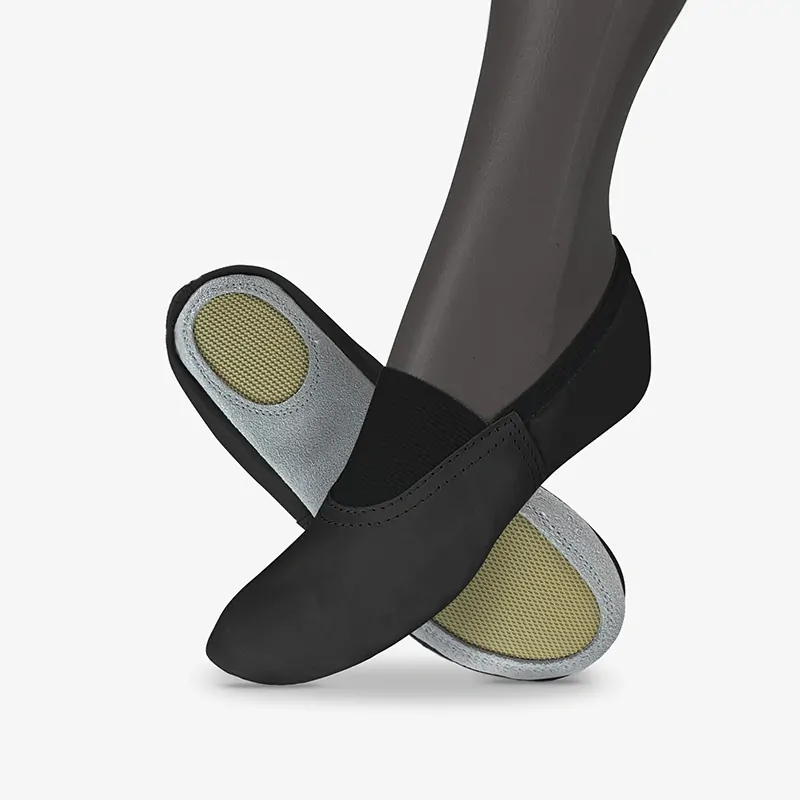 - Sport Grip: Naše cvičky Classic mají koženou podešev s protiskluzovými oválky, což zajišťuje bezpečný pohyb v rozběhu a zároveň lehké otočení na špici i patě. Ideální pro mažoretky a další profi sporty.