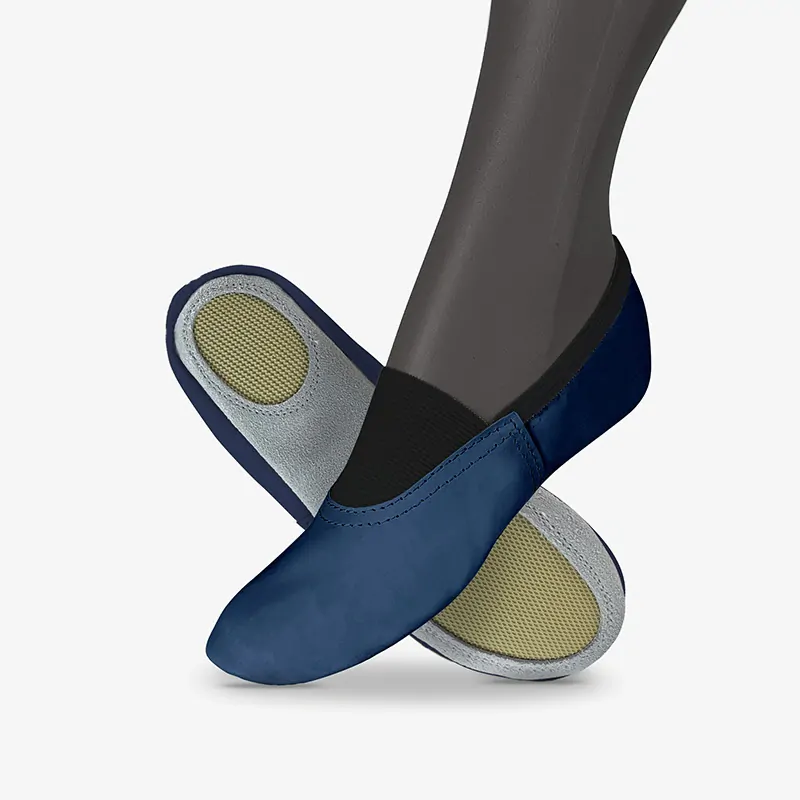 - Sport Grip: Naše cvičky Classic mají koženou podešev s protiskluzovými oválky, což zajišťuje bezpečný pohyb v rozběhu a zároveň lehké otočení na špici i patě. Ideální pro mažoretky a další profi sporty.