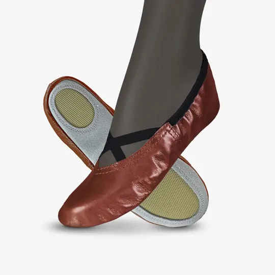 - Sport Grip: Naše cvičky France’s mají kombinovanou podešev, která zajišťuje lehké otočení na špičce či patě díky kožené části a zároveň bezpečný pohyb díky protiskluzovým oválkům. Ideální pro taneční tréninky, mažoretky a další profi sporty.