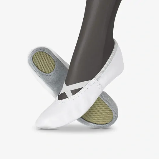 - Sport Grip: Naše cvičky France’s mají kombinovanou podešev, která zajišťuje lehké otočení na špičce či patě díky kožené části a zároveň bezpečný pohyb díky protiskluzovým oválkům. Ideální pro taneční tréninky, mažoretky a další profi sporty.