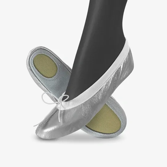 - Sport Grip: Naše cvičky Spirit mají kombinovanou podešev z broušené kůže a protiskluzových oválků, což zajišťuje bezpečný pohyb při sportovních aktivitách a lehký skluz po podlaze.