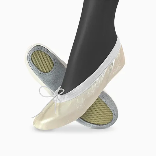 - Sport Grip: Naše cvičky Spirit mají kombinovanou podešev z broušené kůže a protiskluzových oválků, což zajišťuje bezpečný pohyb při sportovních aktivitách a lehký skluz po podlaze.