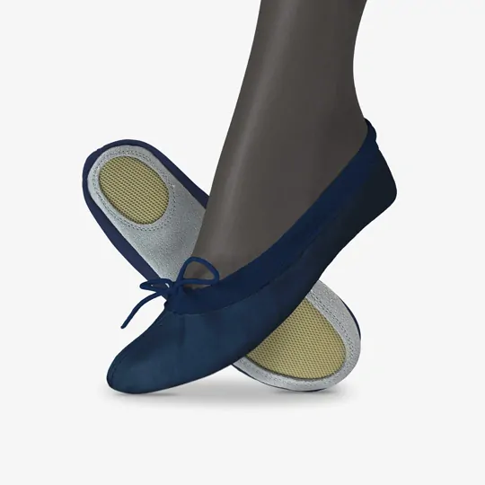 - Sport Grip: Naše cvičky Spirit mají kombinovanou podešev z broušené kůže a protiskluzových oválků, což zajišťuje bezpečný pohyb při sportovních aktivitách a lehký skluz po podlaze.