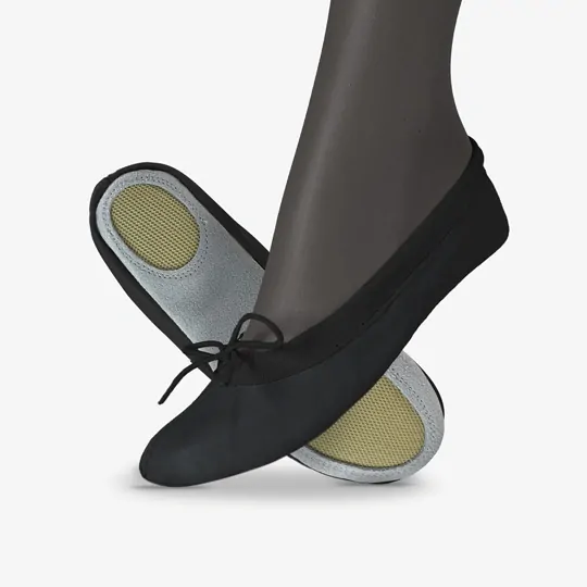 - Sport Grip: Naše cvičky Spirit mají kombinovanou podešev z broušené kůže a protiskluzových oválků, což zajišťuje bezpečný pohyb při sportovních aktivitách a lehký skluz po podlaze.