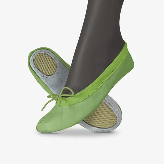 - Sport Grip: Naše cvičky Spirit mají kombinovanou podešev z broušené kůže a protiskluzových oválků, což zajišťuje bezpečný pohyb při sportovních aktivitách a lehký skluz po podlaze.
