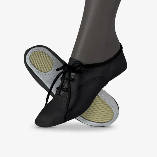 - Sport Grip: Naše cvičky Talent mají kombinovanou podešev, která zajišťuje lehké otočení na špičce či patě díky kožené části a zároveň bezpečný pohyb díky protiskluzovým oválkům. Ideální pro taneční tréninky, mažoretky a další profi sporty.