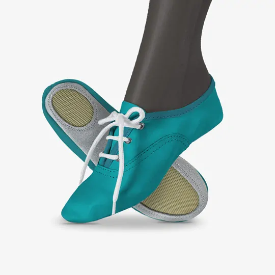 - Sport Grip: Naše cvičky Talent mají kombinovanou podešev, která zajišťuje lehké otočení na špičce či patě díky kožené části a zároveň bezpečný pohyb díky protiskluzovým oválkům. Ideální pro taneční tréninky, mažoretky a další profi sporty.